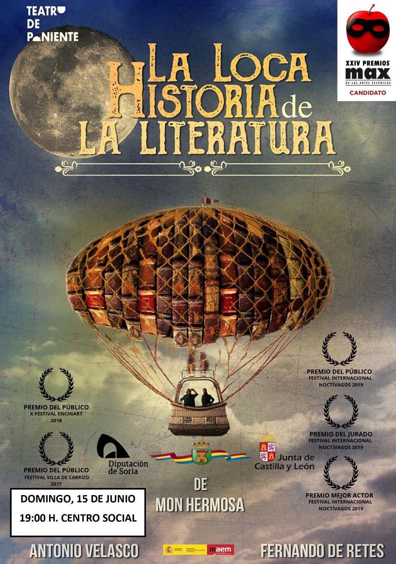 El domingo 15 de mayo a las 19:00 horas en el Centro Social se representará la obra de teatro La loca historia de la literatura a cargo de la compañía Teatro de Poniente.