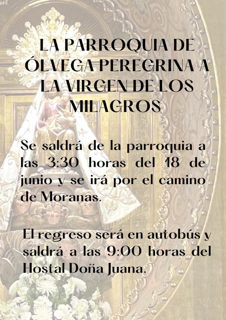 La parroquia de Ólvega organiza una peregrinación a la Virgen de los Milagros.