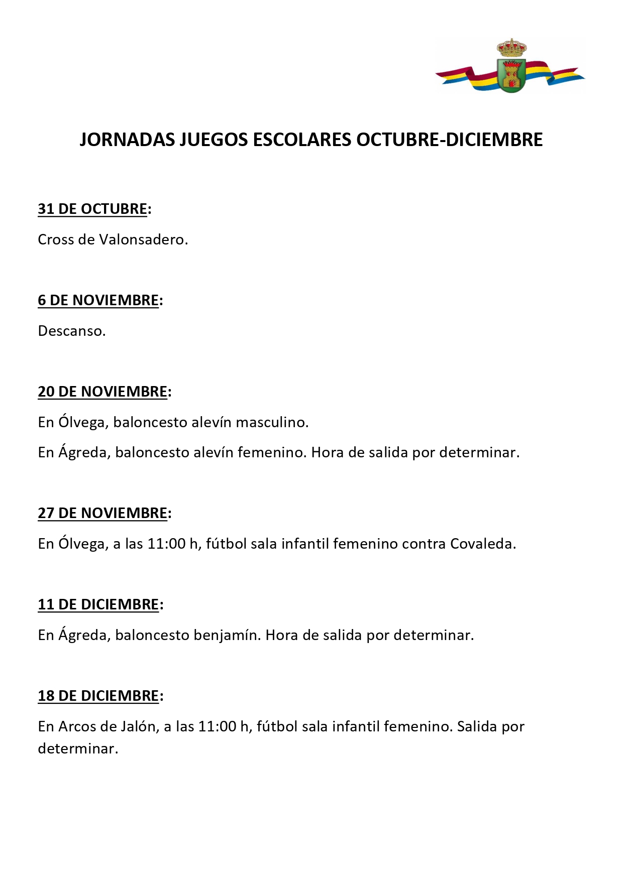 A continuación adjuntamos las jornadas que nuestros chicos y chicas tienen previstas para los meses de octubre, noviembre y diciembre.