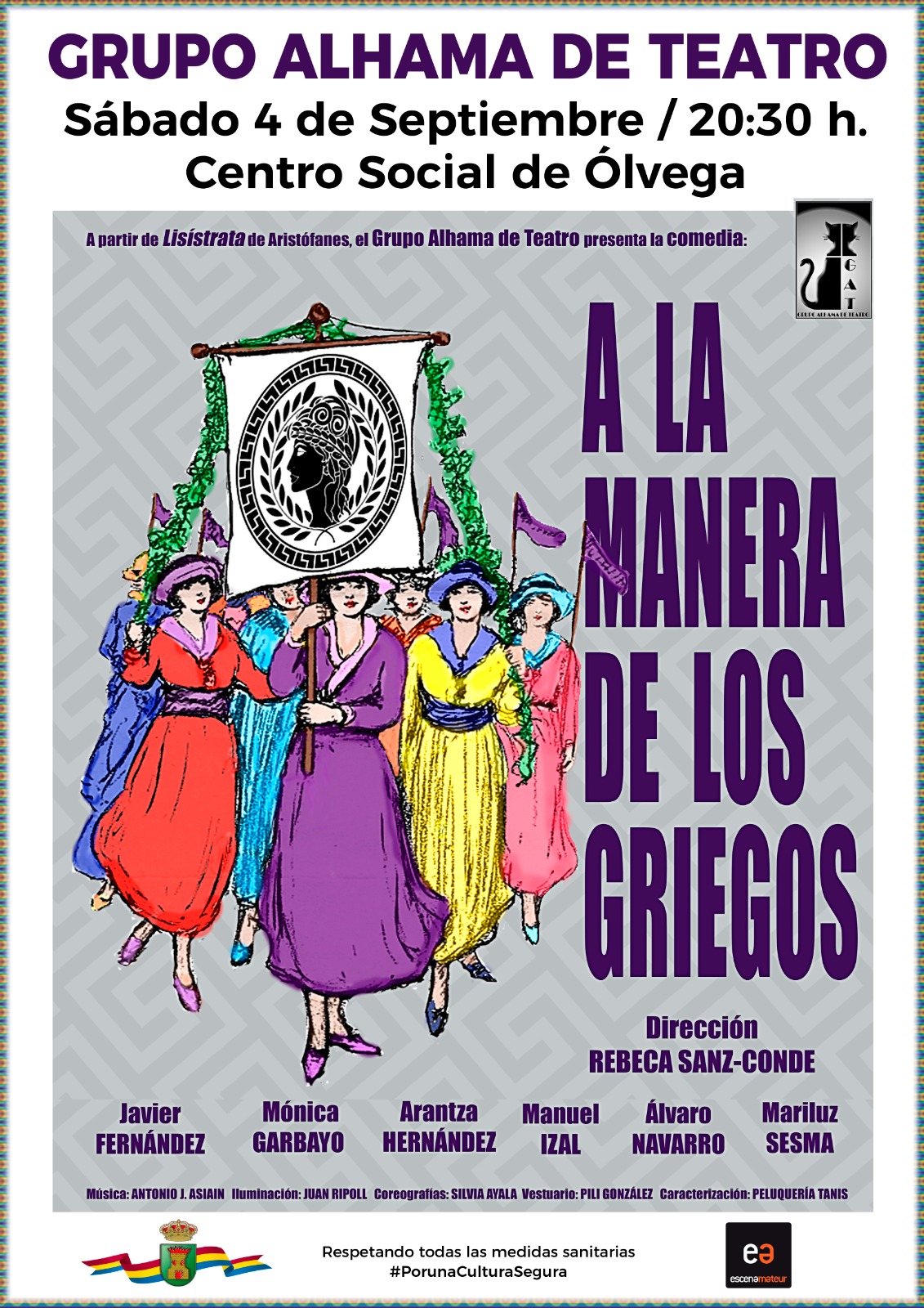 El sábado 4 de septiembre llega al CSO el Grupo Alhama de Teatro. Representarán la comedia 'A la manera de los griegos' a las 20:30h.